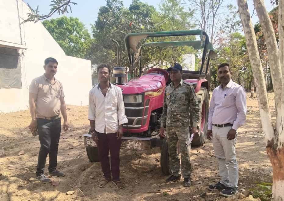 अवैध रेत उत्खनन पर खनिज विभाग की सख्ती, बटरमारा में बिना नंबर का ट्रैक्टर-ट्रॉली जब्त